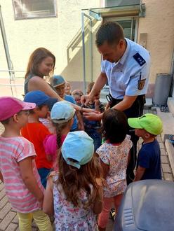 Er hat uns die Handschellen gezeigt und wir haben Olivias Papa geflüstert, dass Julia (unsere Erzieherin) die Handschellen bekommen soll.