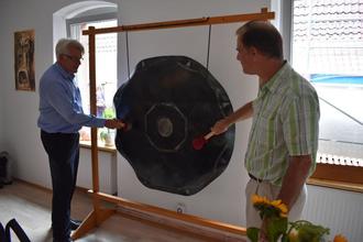 Hartmut Endlich, der zweite Geschäftsführer sowie Erfinder der Fascia Renew-Therapie, stellte in der Folge das derzeitige Team mit den vier Ärzten und den Therapeuten vor. Es gab dabei viel Applaus. Nach einer weiteren Musikeinlage erfolgte der offizielle Einweihungsakt der neuen Praxisräume im Haus Fichte, das nach einigen Monaten Umbauzeit nun für den Praxisbetrieb bereit ist. Ein Riesengong gab den Ton für den offiziellen Start an. Mit dem Praxisbeginn im Haus Fichte können nun die Umbauten im Haus Sonne angegangen werden.