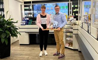 Nachdem der große Hirsch seinen Ehrenplatz gefunden hat und das Wappen in Ersheim das Stadtbild ziert, finden nun die kleineren Exemplare aus der Hirsch-Familie ihr neues Zuhause. Ein Hirsch hatte bereits im Mai seinen Weg nach Chateau-Landon angetreten. In Hirschhorn geht die Reise zu Dr. Arnt Heilmann in die Hirsch-Apotheke, welche in unserem diesjährigen Jubiläumsjahr ihr ganz eigenes Jubiläum feiern kann. Die Hirsch-Apotheke begeht 2023 ihr 200-jähriges Bestehen. Der Erlös des kleinen Hirschen, der nun in der Apotheke seine Heimat gefunden hat, kommt der Spendensammelaktion, die wir mit der Versteigerung der Bilder am Lichterfest (24.09.2023) fortführen, zugute. Vielen Dank.