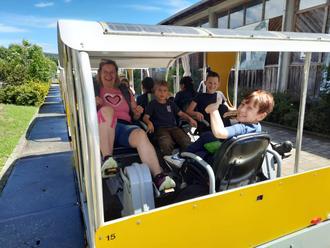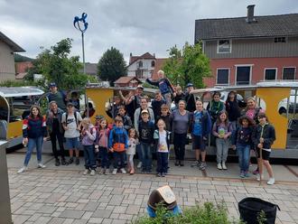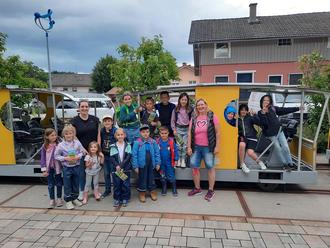 Jeweils immer 7 Kindern waren zusammen mit ihrer Betreuerin in einer Draisine. Währende der Fahrt wurde gemütlich gevespert, die Aussicht genossen und vor allem fleißig in die Pedale getreten, denn es waren immerhin 9 km, die einfach zurückgelegt werden mussten.