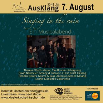 Der Musical-Abend hat im Ausklang-Programm einen festen Platz und es erklangen in der Klosterkirche bekannte Songs aus der internationalen Musical-Welt. Auch wenn es durchaus als Anspielung auf die diesjährigen Wetterbedingungen durchgehen würde, das Ausklang-Konzert mit dem Motto „Singing in the Rain“ bezieht sich ausschließlich auf Musikalisches. Kaum, dass man diese Worte hört, sieht man förmlich Gene Kelly im Regen durch die Nacht tanzen. Es ist eine Hommage an das Filmmusikal aus 1952, das von Fachleuten zum bedeutendsten amerikanischen Musicalfilm aller Zeiten gekürt wurde.