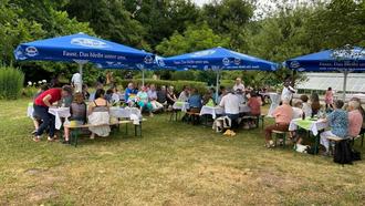 Im wunderschönen Garten hatte der Pfarrgemeinderat bereits alles vorbereitet, sodass sich alle am reichlichen Buffet stärken konnten. Auch für Unterhaltung war bestens gesorgt. Obwohl es zwischendurch etwas regnete, tat dies der guten Stimmung keinen Abbruch – es war ein sehr schöner Nachmittag. Vielen herzlichen Dank an das Vorbereitungsteam.
