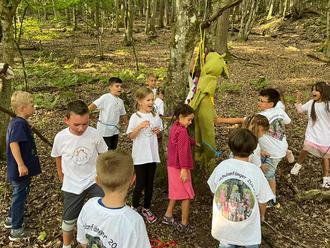 Aber hier war der Abend noch nicht zu Ende, denn dann ging die Party erst richtig los. Die Eltern wurden nach Hause geschickt und die großen GerneGross-Kinder hatten den Spielplatz erstmal für sich ganz alleine. Nach einer Weile wurden die Jungs gerufen, um das Lagerfeuer vorzubereiten. Die Feuerwanne wurde platziert, Holz herbeigetragen und zwei Eimer Löschwasser bereitgestellt. Nun konnte das Feuer entzündet werden. Herrlich, wie es anfing zu knacken und zu knistern. Doch irgendwie war es komisch. Die Mädchen waren verschwunden. Sie waren nirgendwo zu hören oder zu sehen. Die Jungs wollten in der Kita drin nachsehen, doch da lag ein Brief vor der Tür, an die Schulanfänger-Jungs. Der Drache habe die Mädchen entführt. Sogar eine Landkarte lag dabei. Also machten sie sich auf den Weg, um die Mädchen zu befreien. Es ging in den Wald, wo sie wirklich einen Drachen sichten konnten. Und auch die Mädchen waren da.