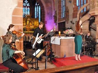 Die Klosterkirche war zum Bersten gefüllt als ein junges Ensemble der Hochschule für Musik Karlsruhe mit Musical- und Filmmusik aufwartete. Trotz kleiner Besetzung war der Sound sinfonisch, Antonia Lechner sang und führte durch das Programm.