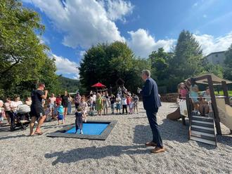 Nun haben die Kinder und Familien in Ersheim wieder einen Anlauf- und Treffpunkt, an dem sie nach Herzenslust klettern, rutschen, schaukeln oder Trampolin springen können.