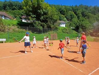Auf den beiden Tennisplätzen des TC Rot-Weiss Hirschhorn e.V. konnten die Kinder bei strahlendem Sonnenschein den Tennispsport näher kennenlernen.