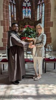 Am 25. August wurde unsere langjährige Küsterin Jutta Fink im Gottesdienst des Kirchweihfestes der Klosterkirche verabschiedet. Pater Sijoy dankte Frau Fink für die neun Jahre, die sie den Dienst verantwortungsbewusst und mit viel Herzblut ausgeübt hatte. Dazu gehörten die Sonntagsgottesdienste und Hochfeste, die Ministrantenarbeit und auch das Waschen der Gewänder und liturgischen Tücher.