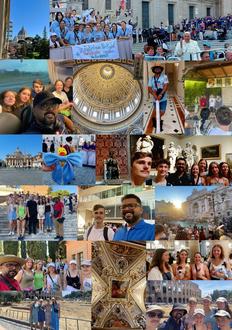 Am 27.07.2024 ging es für uns um 20:30 Uhr von Heppenheim aus mit dem Bus nach Rom. Dabei hatte vor allem Pater Alex Glück mit seinem Platz, denn er hatte als Einziger zwei Sitze nur für sich. Um 12:30 Uhr sind wir dann endlich in Rom angekommen und konnten unsere Zimmer im Hotel Lazio beziehen. Aufgrund der hohen Temperaturen, die selten unter 38°C waren, legten wir danach erstmal eine kleine Siesta ein. Vor dem Abendgebet, dass in der Santa Marie Sopra Minerva stattfand, entschlossen wir uns noch in der Nähe von Pantheon das erste italienische Eis zu essen. Die Entscheidung, welche Eissorte es werden soll, war jedoch sehr schwierig, da es in dieser Eisdiele 150 Eissorten gab. Als Abschluss des ersten Tages, sind wir noch gemütlich durch Rom geschlendert und haben uns das Kolosseum und Forum Romanum bei Nacht angeschaut.