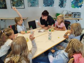 Im Rahmen des Ferienspielprogramms fand ein ganz besonderes Angebot statt: Ein "Erster-Hilfe-Kurs für Kinder" unter der fachkundigen Leitung der DLRG-Mitglieder Carmen, Marcel und Thomas. Mit viel Engagement und Freude vermittelten die drei Helfer den jungen Teilnehmerinnen und Teilnehmern erste Grundlagen der Ersten Hilfe – und das auf spielerische Weise.