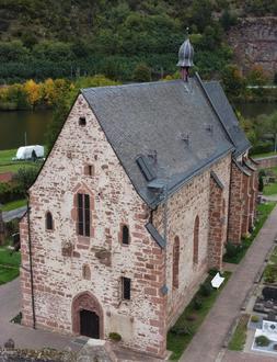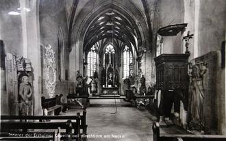 Die historische Innenansicht, welche vermutlich um 1940 von einem unbekannten Fotograf aufgenommen wurde, zeigt erhebliche Abweichungen zur heutigen Situation. Die Aufnahme aus der Luft, fotografiert von Stefan Pahl, bietet einen ungewohnten Überblick über das Umfeld einer der ältesten Kirchen im Neckartal.
