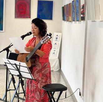Die brasilianische Sängerin Ignez Carvalho hieß mit einem Musikstück, passend zum Thema, alle Gäste willkommen. Bürgermeister Martin Hölz hielt seine Eröffnungsrede, gefolgt von Katrin Meidinger (Leitung Tourist-Info), welche in ihren Worten betonte, dass Hirschhorn nicht nur die Ehre hat die tollen Kunstwerke ausstellen zu dürfen, sondern es eine ausgesprochene Freude war, die Künstlerinnen persönlich kennenzulernen. Auch die Frauenbeauftragten des Landratsamtes Heppenheim Alexandra Schmidt und Nicole Schmidt ließen sich die Möglichkeit nicht entgehen und überraschten die Künstlerinnen mit lobenden Worten und einer Torte. Zum Abschluss stellte die Künstlerin Jana Haft die Gruppe vor und erläuterte den Standpunkt jeder einzelnen Teilnehmerin zum Thema Liebe und eröffnete somit freudig die Ausstellung.