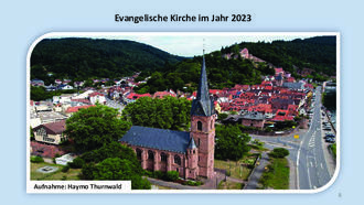 Das im neugotischen Stil gebaute evangelische Gotteshaus wurde am 7. November 1892 in Gegenwart des hessischen Großherzogs Ernst Ludwig geweiht. Die heute von Pfarrer Alexander Muth betreute Kirchengemeinde feierte im Juli 2023 das 130-jährige (+ 1) Jubiläum nach.