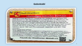 Neben dem jüdischen Bethaus, sind in der Hirschhorner Altstadt zahlreiche Fachwerkhäuser erhalten, die der Altstadtverein mit Informationstafeln versah. Nachfolgend gehe ich auf drei besondere Bauten ein.