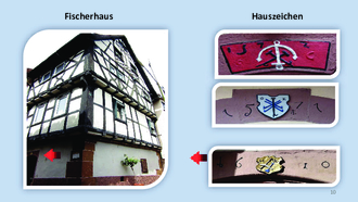 Wer aufmerksam durch die Altstadt spaziert, dem fallen die Hauszeichen an verschiedenen Gebäuden auf. Bemerkenswert sind die Zeichen der Flößer, Schiffer und Fischer, die mit Flößerhaken, Ankern oder Fischen von der einstigen Bedeutung dieser Berufe zeugen. Der Überlieferung nach wurde das Haus in der Hirschgasse 16 um 1610 durch den reichsten Fischer erbaut. Die Fischerei war im 17. Jahrhundert ein lohnendes Geschäft. Beispielsweise hatte der Fischer Hans Georg Kern 1694 ein Vermögen von 267 Gulden, während es Handwerksmeister in der Regel auf 100 bis 200 Gulden brachten.