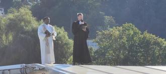 Am Sonntag feierten wir dann einen großen ökumenischen Festgottesdienst mit unseren katholischen Geschwistern. Das große Schiff von Tobias und Madeleine Bell diente uns dabei als Kanzel.