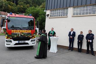Im Anschluss segneten Pfarrer Muth und Pater Sijoy im Rahmen einer kleinen ökumenischen Andacht unser neues Löschfahrzeug.