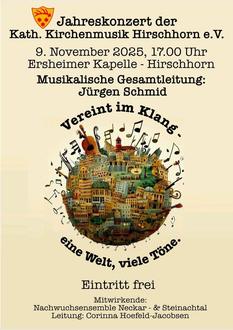 Wir laden die Bevölkerung recht herzlich zu unserem Jahreskonzert am Sonntag 9. November um 17 Uhr in die Ersheimer Kapelle ein. Unter der musikalischen Gesamtleitung von Jürgen Schmid und unter dem Motto „Vereint im Klang – eine Welt, viele Töne“, werden sorgfältig ausgewählte Stücke präsentiert.