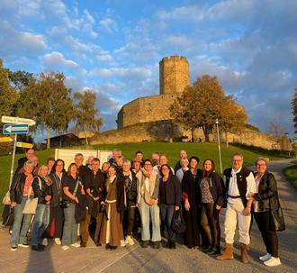 Am Spätnachmittag besuchte eine interessierte Mitgliedergruppe, teilweise historisch gekleidet, im Rahmen eines Vereinsausfluges die Burg Steinsberg. Per Bus ging es durch den Sinsheimer Stadtteil Weiler, hinauf auf die höchste Erhebung des Kraichgaus. Bei guter Sicht konnte man, von der auf 333 Meter über dem Meeresspiegel gelegenen Burg, die Höhenzüge des Odenwaldes mit dem Katzenbuckel deutlich erkennen.