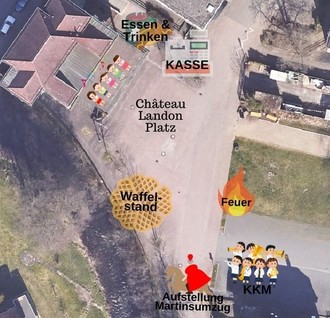 Im Anschluss startet unser Laternen-Umzug. Dieser führt den Alten Weg entlang, über die kleine Brücke, zum Biesinger-Brunnen und wieder zurück am Spielplatz entlang zum Château-Landon-Platz.