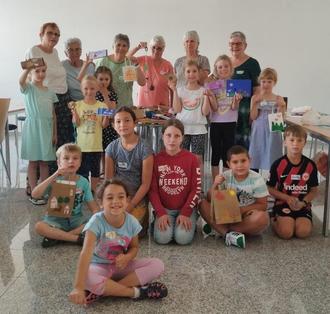 Ein weiterer, ebenfalls mittlerweile traditioneller, Programmpunkt gestaltete Moni Schätzle zusammen mit dem SeniorenTeam. Sie luden zum Basteln ins Rathaus. Diesmal waren es so viele Anmeldungen, dass zum ersten Mal 2 Termine für den Bastelvormittag angeboten wurden. Unzählige Vorlagen, Aufkleber und gestanzte Formen und Bilder wurden im Vorfeld vorbereitet und lagen bereit.