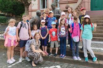Gemeinsam mit Frau Mäurer von der Sparkasse Starkenburg und Kindern aus Neckarsteinach, machten wir uns auf den Weg nach Heppenheim. Die Zugfahrt wurde sich mit „Ich sehe was, was du nicht siehst“ und „Stein, Schere, Papier“ vertrieben und verging daher wie im Flug. Nach einem kurzen Spaziergang durch die Altstadt erreichten wir das Geldmuseum. Dort wurden wir bereits erwartet und herzlich empfangen.