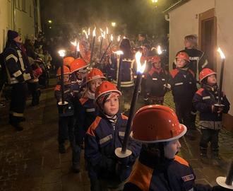 Bevor wir losgelaufen sind, haben wir uns alle im Städtchen oben getroffen. Manche hatten ihre Mama, Papa, Geschwister oder Oma und Opa dabei. Auf jeden Fall hatten wir auch eine Laterne dabei. Im Kindergarten haben wir die gemacht. Die Kinder von der Bambini Feuerwehr hatten keine Laterne dabei. Die hatten Fackeln mit echtem Feuer. Mann musste die Fackeln unten halten und den Bienenwachs aufhalten. Auf die Haare mussten wir sehr aufpassen, sonst brennen die. Es ist aber niemandem was passiert.