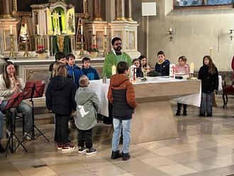 Gegen Ende des Gottesdienstes segnete Pater Alex die Gruppenkerzen der Erstkommunionkinder und feierte mit ihnen eine Tauferneuerung. Nach dem Gottesdienst waren alle zum Kirchencafé eingeladen und so hatten man Gelegenheit sich bei Kaffee und leckerem Kuchen auszutauschen.