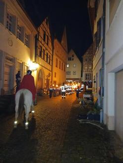 Gestern war unser St. Martin Fest. Als wir auf dem Marktplatz kamen, wurde es schon langsam dunkel und es gab kleine Feuerstellen aus Holz. Da kamen sogar kleine Funken und das sah so schön aus. Aber der Rauch hat gestunken. Zuerst haben wir uns dann eine Waffel geholt. Und ich habe einen Kinderpunsch und eine Wurst im Brötchen bekommen. Das hat alles sehr, sehr lecker geschmeckt. Nachdem wir gegessen haben, sind wir auf dem Marktplatz herumgelaufen und haben dabei auch viele Kinder gesehen, die mal bei uns im Kindergarten waren. Jetzt aber in der Schule. Wir haben uns richtig gefreut uns zu sehen und haben gleich noch ein bisschen gespielt.