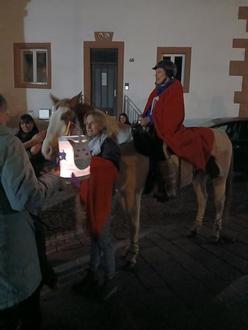 Als der Umzug vorbei war und wir wieder zurück waren, haben wir uns nochmal getroffen. Wir haben noch die Geschichte von St. Martin gehört. Der Pfarrer Muth hat gesagt, dass St. Martin dann kein edler Ritter mehr war, sondern ein Soldat, der armen Menschen geholfen hat.
