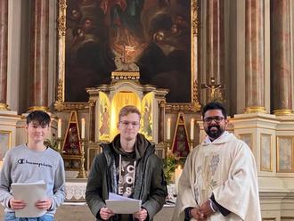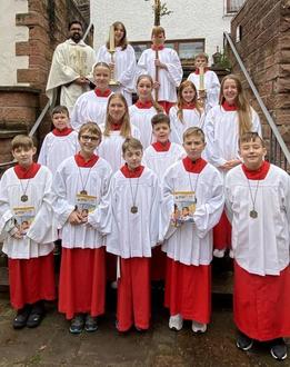 Am Hochfest Christkönig, dem letzten Sonntag im Kirchenjahr, wurden unsere neuen Ministranten offiziell eingeführt. Nach ihrer Erstkommunion hatten sich Emmanuel, Justus, Nina, Theo, Tim und Vincent aus unserer Gemeinde entschieden, MinistrantInnen-kurz Mini- zu werden. Sie hatten ja schon einige Monate Zeit die ersten Erfahrungen zu sammeln, jetzt wurden sie in den Kreis der Ministranten aufgenommen. Symbolträchtig bekamen sie von den älteren Ministranten die Gewänder übergezogen und erhielten die von Pater Alex gesegneten Ministranten-Plaketten, ein Zeichen, dass sie zur großen Gemeinschaft der Kirche gehören, überreicht. Wir wünschen unseren „neuen Minis“ viele schöne und spannende Jahre in ihrem Dienst, viel Spaß, tolle Unternehmungen und dass der Glaube lebendig bleibt und wachsen kann.