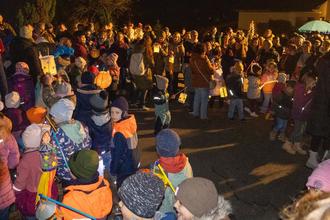 „Sankt-Martin, Sankt-Martin, Sankt-Martin ritt durch Schnee und Wind…“, damit begrüßten sich um 18 Uhr alle Kinder und Erwachsenen am Spielplatz in Langenthal. Nach dem ersten gemeinsamen Lied zogen alle Kinder mit ihren toll leuchtenden Laternen los. Diese wurden in diesem Jahr bei einem gemeinsamen Basteltag mit Eltern und Kindern gestaltet. Nach zwei weiteren Stopps, die musikalisch begleitet wurden, sind wir schließlich am Wendeplatz im Hohen Feld angekommen. Musikalisch begleitet wurden wir auch in diesem Jahr wieder von Herrn Zobel, der die Trompete spielte. Vielen Dank dafür!