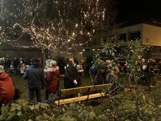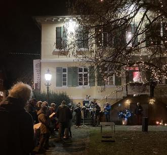 Zum vierten Mal startete der Hirschhorner Advent vor dem Langbein Museum am ersten Adventfreitag nach dem „Sechsuhrläuten“ der evangelischen Kirche. Das kleine Event, das der Freundeskreis Langbein'sche Sammlung organisiert, erfreut sich immer größerer Beliebtheit. Rund 80 Gäste und Mitsinger waren an diesem Tag vor Ort und freuten sich über die Weihnachtslieder der Musiker der Katholischen Kirchenmusik Hirschhorn.