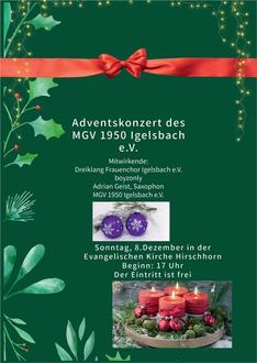 Am 2. Adventsonntag 8. Dezember um 17 Uhr, lädt der MGV Igelsbach zu seinem Adventskonzert in die evangelische Kirche in Hirschhorn ein.