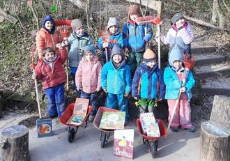 Heute wollen wir zeigen, was wir mit den Spendengeldern, die wir letztes Jahr erhielten, angeschafft haben! Wir freuen uns, denn nun haben wir wieder neue Schubkarren, Rechen, Schaufeln, Bilderbücher, Kreide, usw.