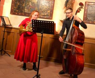 Das Duo Jessica Armstrong (Horn) und Jens Veeser (Kontrabass), traten den hörbaren Beweis an, das sich scheinbare musikalische Gegensätze nicht nur klanglich überbrücken lassen, sondern zu Kammermusik auf Topniveau taugen. Hierzu braucht es zwei ausgewiesene Virtuosen. Nicht umsonst sind sowohl die gebürtige Australierin Armstrong als auch der Stuttgarter Veeser beim Heidelberger Orchester als Solisten unter Vertrag.