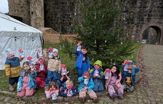 Der Mit-Organisator der Hirschhorner Burgweihnacht Uwe Weber, konnte dann auch nach Beendigung des Schmückens allen Kindern weihnachtliche Geschenke überreichen, welche freundlicherweise von den Gewebetreibenden der mittelalterlichen Stadt Hirschhorn gestiftet wurden.