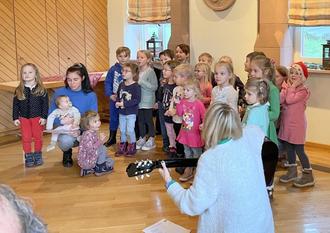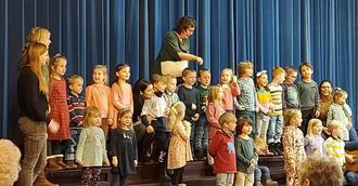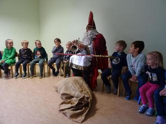 Hier wurde gesungen, Gedichte aufgesagt und der Nikolaus trompetete Weihnachtslieder. Danach bekam jedes Kind seinen gefüllten Nikolaussocken. Und dann musste der Nikolaus weitergehen, um auch noch andere Kinder zu erfreuen.