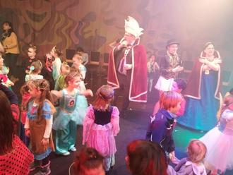 Dort konnten die beiden Kommissarinnen Melina und Louisa sehr viele schöne und phantasievoll kostümierte Kinder sowie deren Eltern und auch Großeltern begrüßen. Die Kommissare hatten die Aufgabe, mit Hilfe der vielen anwesenden Kinder und den Akteuren auf der Bühne, die Diebe, die die Diamanten aus dem Bürgersaal gestohlen hatten, aufzuspüren.