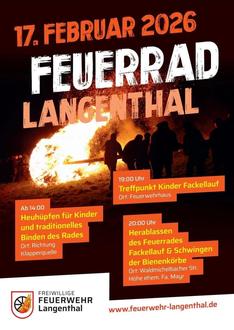 Am Faschingsdienstag 17. Februar, lädt die Freiwillige Feuerwehr Langenthal wieder zu einem der ältesten Bräuche der Region ein: dem Herablassen ihres Feuerrads. Ab 14 Uhr beginnt das Programm mit Heuhüpfen und dem gemeinsamen Binden des großen Strohrades.
