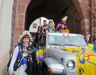 Pünktlich um 13.31 Uhr setzte sich der Zug mit 90 Nummern, angeführt von Zugmarschall Matthias Denner im Zugleitungswagen, in der Uferstraße in Bewegung. Mit dabei waren neben vielen Gruppen der C.G. Hirschhorner Ritter, große Abordnungen des Hirschhorner Carnevalvereins Lachsbachperle, der Neckargemünder Karnevals-Gesellschaft, der KG Kuckuck Eberbach, der KG Urmel Eberbach, des Club Eulenspiegel aus Rockenau und der SV Narrhalla Ober-Hainbrunn.