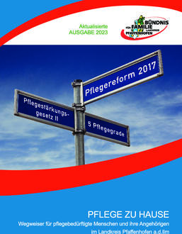 Die Arbeitsgruppe „Inklusion, Pflege, Behinderung“ des Bündnisses für Familie hat bereits im Jahr 2017 eine Broschüre erarbeitet, die über alle wichtigen Themen im Bereich der häuslichen Pflege im Landkreis Pfaffenhofen informiert. Nun erscheint die Broschüre in der dritten, geänderten und aktualisierten Auflage. Unter anderem wurden die Angaben zu den finanziellen Leistungen nach dem Pflegestärkungsgesetz II aktualisiert und der Einschätzungsbogen zur Beurteilung des Pflegegrades grundlegend überarbeitet.