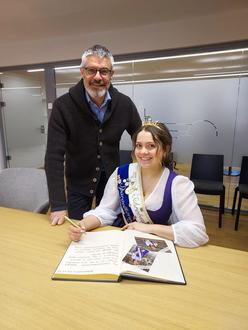 Erster Bürgermeister Jürgen Haindl freute sich sehr, dass ihm die junge Hohenwarterin, die nicht nur im elterlichen Spargelhof Schweiger eingebunden ist, sondern auch ein Studium in Wirtschaftspsychologie absolviert, die Ehre erwies und sich ins Goldene Buch des Marktes Hohenwart eingetragen hat.