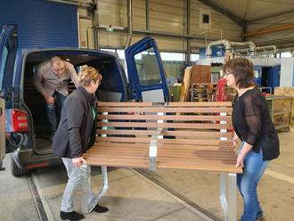 Mithilfe von vier zusätzlichen starken Armen wurden die Bänke am 23.03.2023 in Schrobenhausen abgeholt und zum Friedhof gebracht.
