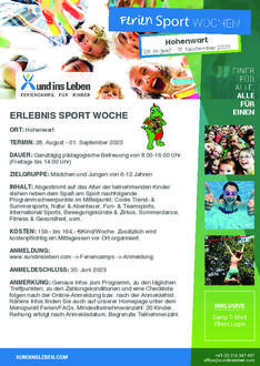 Der Markt Hohenwart bietet im kommenden Sommer erstmalig eine Ferienbetreuung im Rahmen einer „Erlebnis-Sport-Woche“ an, welche über „Xund ins Leben“ veranstaltet wird.