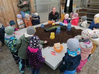 Den Abschluss machte dann am 3. und 4. April der Besuch bei der Gärtnerei Fahn. Dort durften die Kinder Kresse ansäen und eine Blume pflanzen. Anschließend hat uns Herr Fahn etwas darüber erzählt und eine Führung durch die Gärtnerei gegeben. Nun kann der Frühling beginnen!