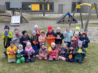 Am Freitag vor den Osterferien fand unser Osterfest in den Gruppen statt. Am Morgen stärkten wir uns mit einem leckeren Osterbuffet, welches von den Eltern mitgebracht wurde. Anschließend machten alle Gruppen einen Spaziergang, um dort Ausschau nach dem Osterhasen zu halten. Zurück im Kindergarten angekommen stellten die Kinder mit Freude fest, dass dieser uns bereits besucht hatte. Alle selbstgebastelten Nester wurden von ihm im Garten versteckt. Das große Suchen konnte beginnen und die Freude bei jedem gefundenen Nest war riesig. Im Nest versteckt waren Schokoeier, ein kleiner Schokohase sowie ein Straßenmalkreide-Ei. Am Ende des Kindergartentages durften die Nester ganz stolz mit nach Hause genommen werden.