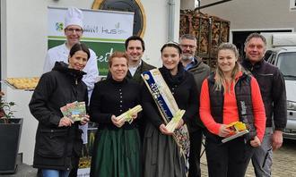 Im Landkreis gebe es 13 Betriebe mit einer Fläche von insgesamt 180 Hektar, die Mitglied im Spargelerzeugerverband Südbayern seien. Zusätzlich sei im Landkreis auch Pörnbacher Spargel erhältlich. „Hier vor Ort ist der längste Weg, den der Spargel zurücklegt, meist der auf dem Feld. Jede Stange muss einzeln per Hand aus dem Boden geholt werden. Pro Hektar Fläche sind die Helfer oft mehr als fünf Kilometer zu Fuß unterwegs. Das Auf- und Abdecken der Planen noch nicht mit eingerechnet“, berichtete Hofner. Gemeinsam mit Schnapp warb er für die regionale Direktvermarktung sowie die heimische Gastronomie. Auch Reichart lobte die Qualität und die Frische der Stangen. Egal ob klassisch mit Sauce Hollandaise, Kartoffeln und Schinken oder auf moderne Art interpretiert, die Gastronomen würden mit einem vielseitigen Angebot aufwarten. Davon zeugten die mitgebrachten Spargelstangen im Blätterteig, eine Spargellasagne sowie ein exotischer Spargelsalat.