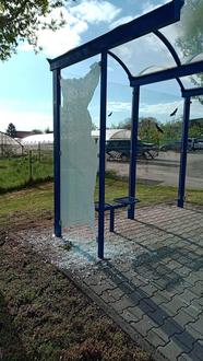 Eingeschlagene Scheibe am Buschäuschen am Klosterberg