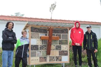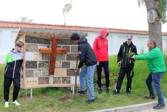 Am Mittwoch, den 10.05.2023 war es soweit. Das fertige Hotel wurde am Friedhof aufgebaut und übergeben. Hohenwarts 3. Bürgermeisterin Andrea Widl war begeistert und bedankte sich bei den fleißgen jugendlichen Helfern mit Gutscheinen für ein Döner-Essen.
