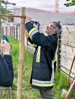 Und auch das anschließende Einsetzen und Verankern des Baumes ging beiden Protagonisten gut von der Hand.